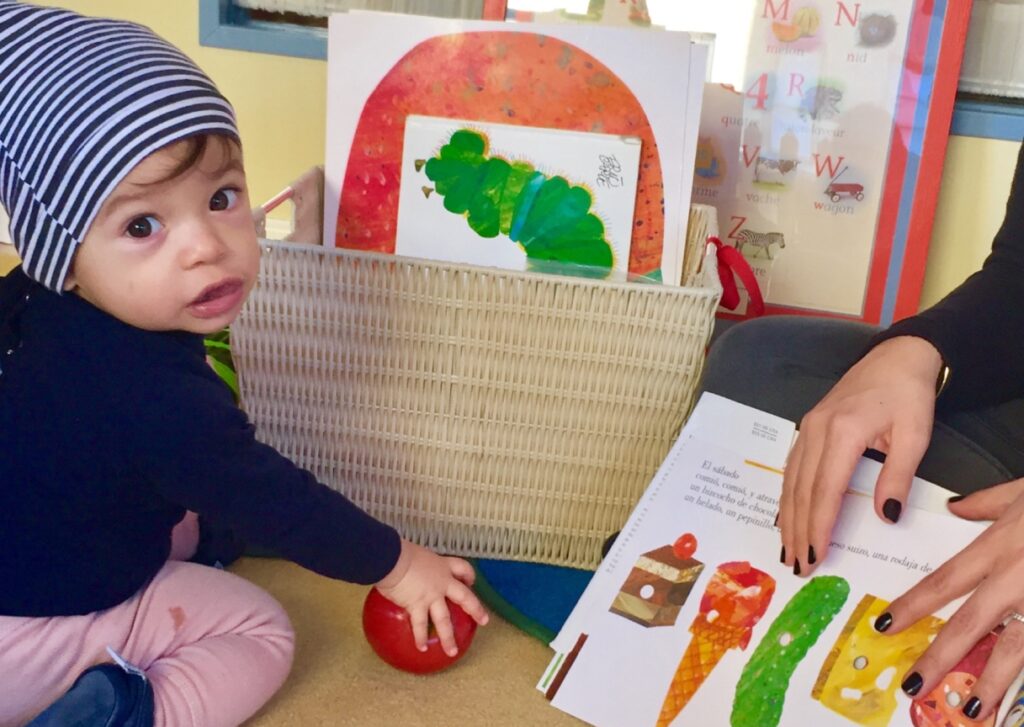 Cuddle, smile, and hold hands as you talk and read with your baby. Make lots of eye contact. Point out objects and activities in your daily life, home, and neighborhood, naming them for them as you go about your normal routine. Sing and dance. Play games. Don’t feel silly speaking your natural “parentese”– the high-pitched sing-song language that we instinctively use with infants. It’s very important to language development! It helps babies become familiar with the sounds of their mother tongue.